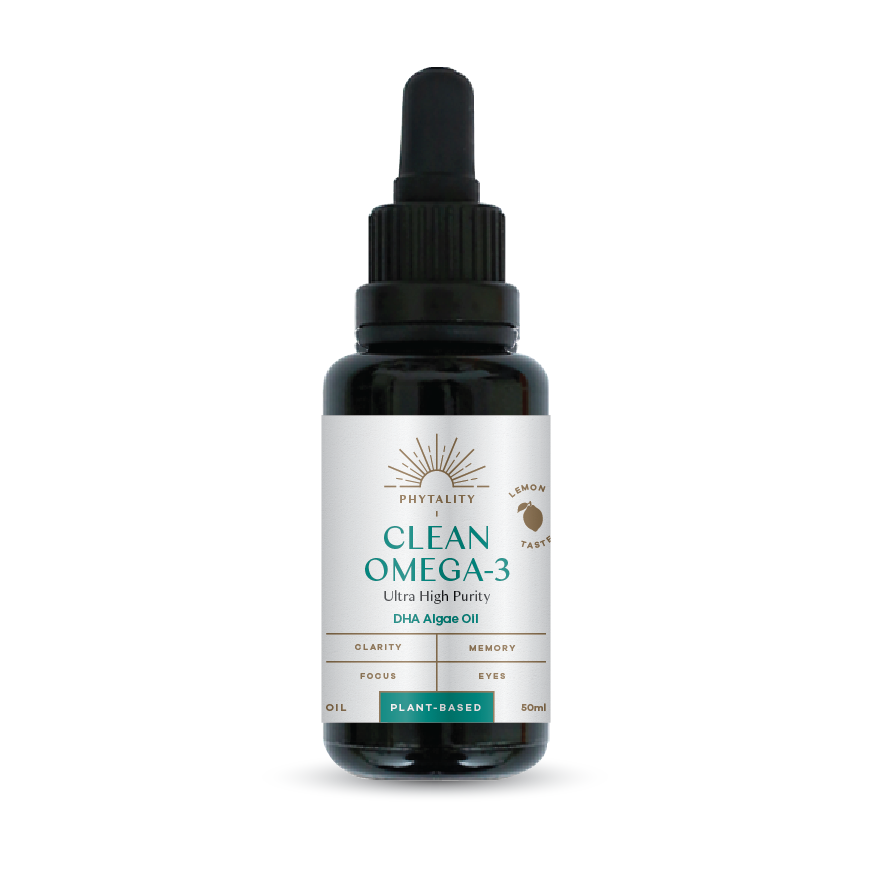 Clean Omega-3 is a vegan, solvent-free DHA algae oil that supports brain health, mental clarity, and fertility, with no flavour, odour, or risk of oxidation.