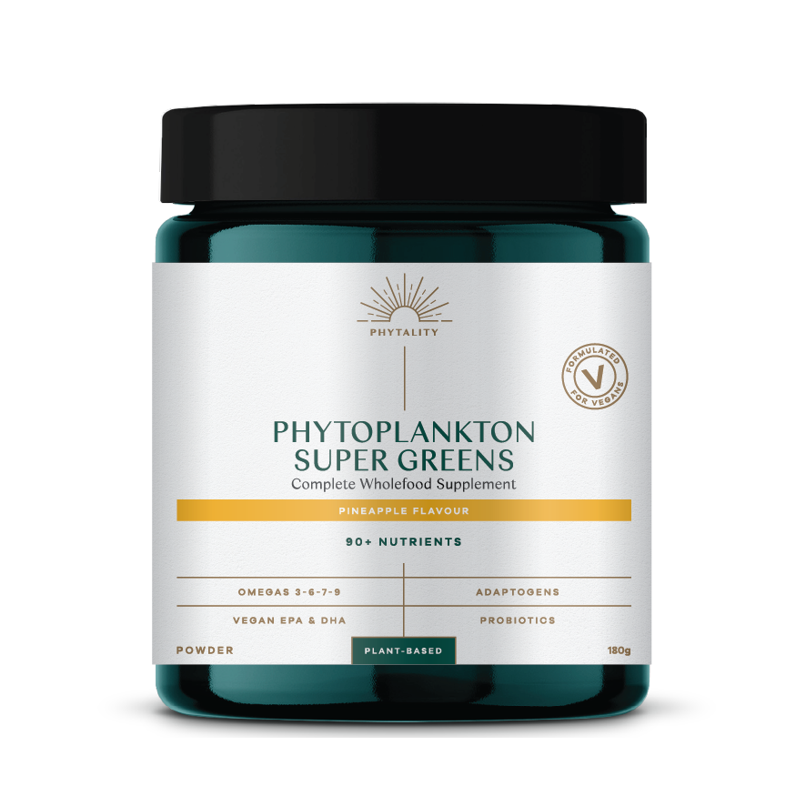 Phytoplankton Super Greens is a delicious pineapple-flavoured blend of alkaline superfoods, antioxidants, probiotics, and ULTANA™ Phytoplankton, promoting gut health, energy, mental clarity, and reduced stress.