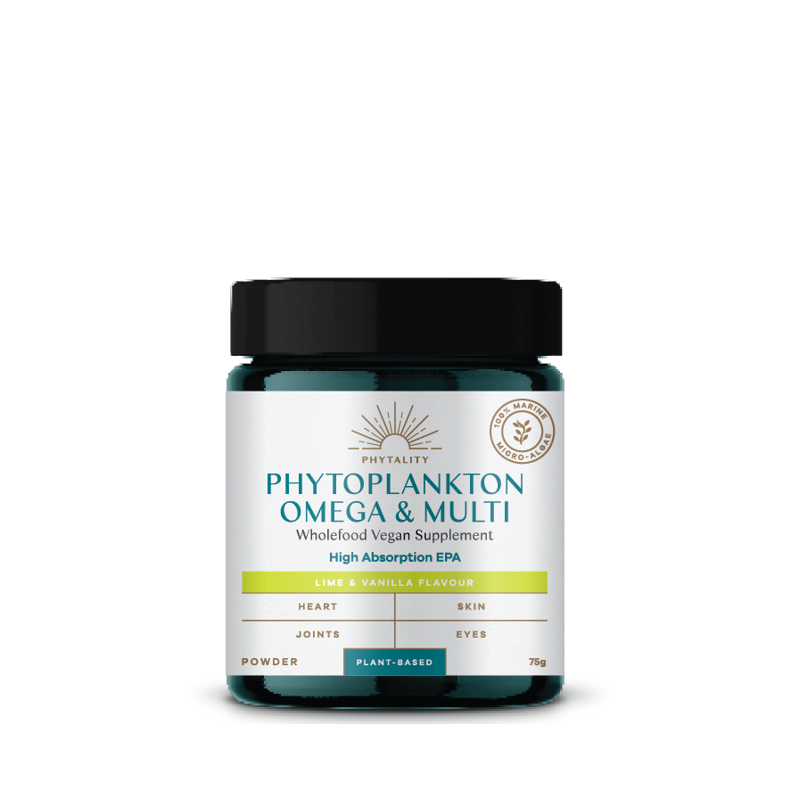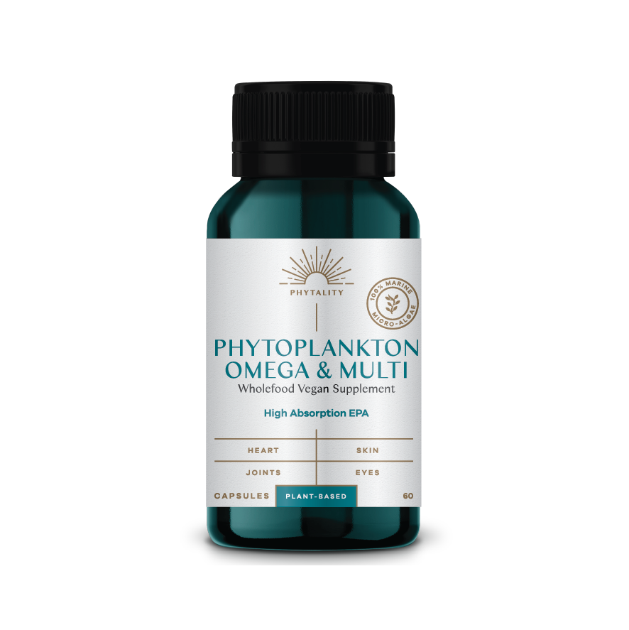 Phytoplankton Omega & Multi is a plant-based supplement with Omega-3, vitamins, and B12. It boosts energy, immunity, and supports heart and eye health, offering enhanced Omega-3 absorption and essential nutrients in a pure, oxidation-free form.