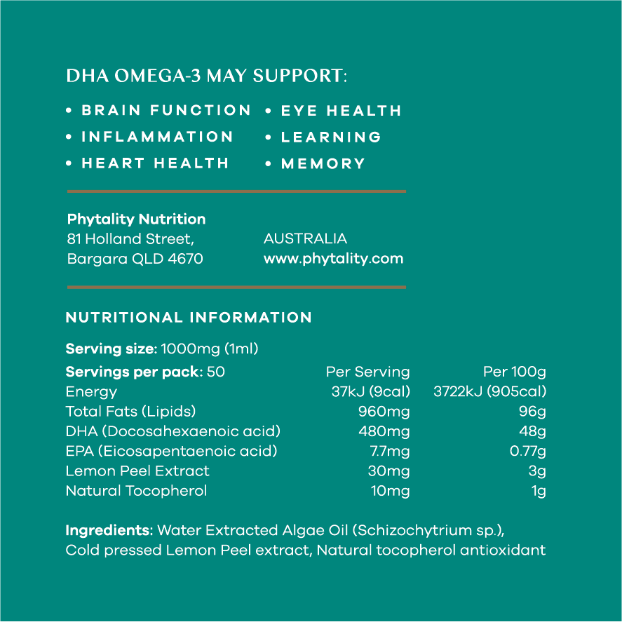 Pair Lime & Vanilla Phytoplankton + Lemon Clean Omega-3 Oil for a tropical flavour AND perfectly balanced EPA & DHA.The above two products work in perfect synergy, to allow for getting both EPA and DHA in combination, whilst allowing the consumer to get more DHA across the Blood Brain Barrier.